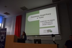 Debata rozpoczęła się od powitanie gości przez Zastępcę Komendanta Powiatowego Policji w Turku podinspektora Romana Ciesielczyka. Podczas spotkania swoja wiedzą na temat uzależnień i ich szkodliwego wpływu na organizm ludzki dzieliła się Pani Elżbieta Piąstka. Kolejną osoba która zabrała głos była asp. Dorota Grzelak z Komendy Powiatowej Policji w Turku, która omówił problem handlu ludźmi od strony prawnej. Natomiast Pani Beata Bartczak – Dyrektor Powiatowego Urzędu Pracy omówiła obowiązki pracodawców oraz korzyści płynące z legalnych ofert pracy. Także kolejny gość Pani Romualda Zagozda-Frątczak psycholog Poradni Psychologiczno-Pedagogicznej w Turku omówiła zagadnienia związane handlem ludźmi.