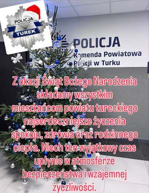 Z okazji Świąt Bożego Narodzenia i Nowego Roku Komendant Powiatowy Policji w Turku nadkom. Dariusz Szczepański w imieniu własnym i kierownictwa turkowskiej Policji składa życzenia wszystkim policjantkom, policjantom, pracownikom Policji oraz mieszkańcom powiatu tureckiego.
