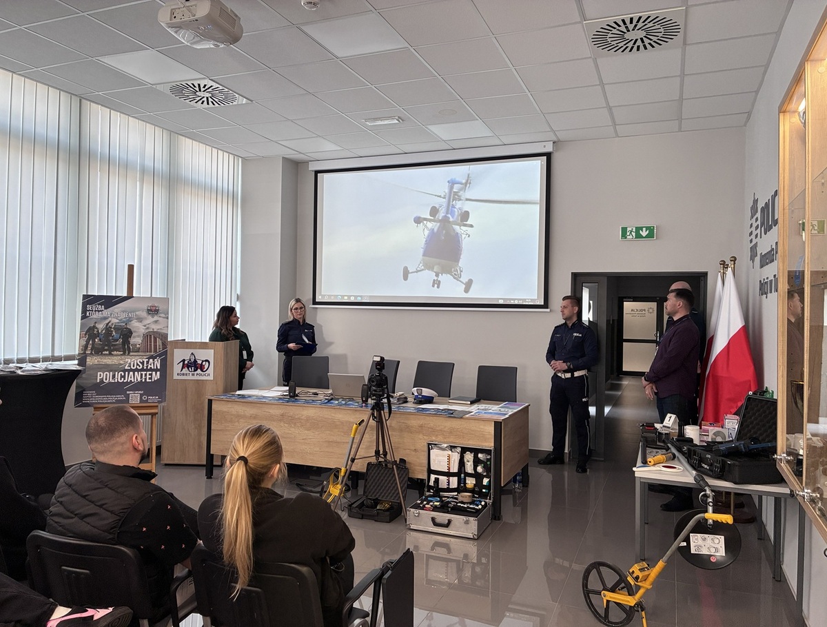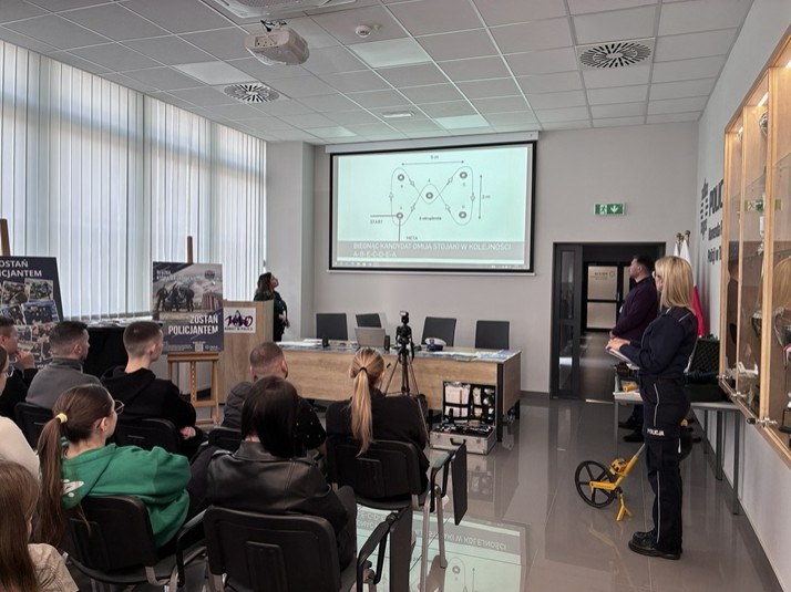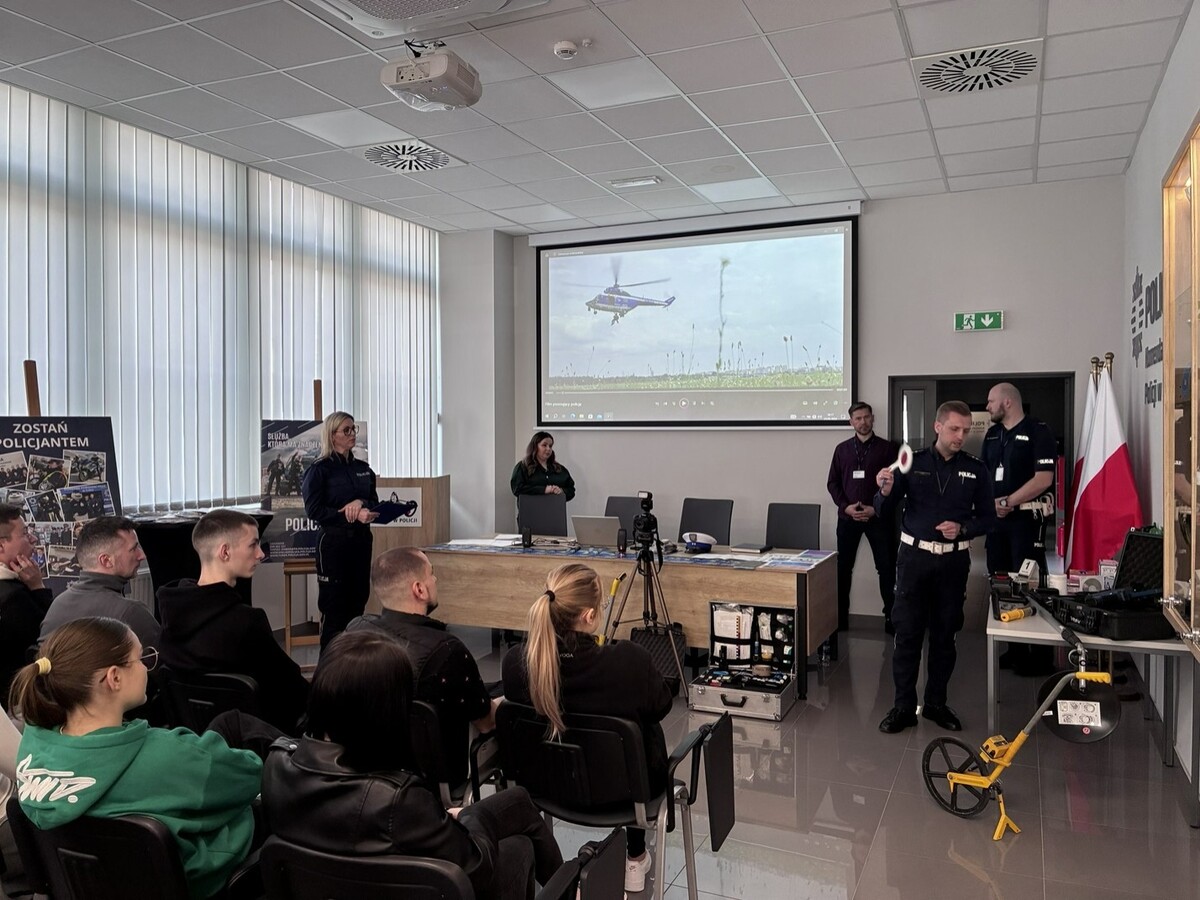 Podczas spotkania asp. Karolina Gmach omówiła również proces rekrutacji do Policji. Osoby zainteresowane wstąpieniem do formacji mogły uzyskać szczegółowe informacje dotyczące kolejnych etapów postępowania kwalifikacyjnego, wymagań stawianych kandydatom, a także możliwości rozwoju zawodowego i ścieżek kariery w Policji.