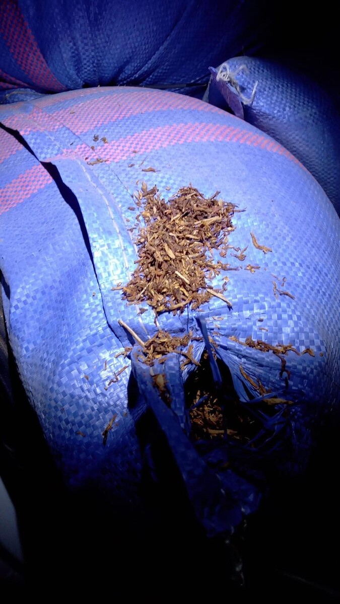 Podczas sprawdzenia jednego z pojazdów mundurowi nabrali podejrzeń co do przewożonego ładunku. W wyniku dokładnej kontroli znaleziono łącznie 22 worki tytoniu krajanki o wadze przekraczającej 21 kilogramów oraz 4 kartony tytoniu o łącznej wadze ponad 1200 kilogramów. Całość została zabezpieczona przez funkcjonariuszy.