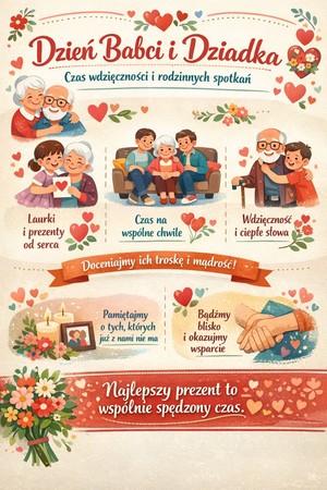 Zbliżający się Dzień Babci i Dziadka to szczególne święto, które co roku przypomina nam, jak ważną rolę w życiu rodziny i społeczeństwa odgrywają seniorzy. To dzień pełen ciepłych gestów, rodzinnych spotkań oraz słów wdzięczności kierowanych do tych, którzy przez lata dzielili się swoją mądrością, doświadczeniem i bezwarunkową miłością.